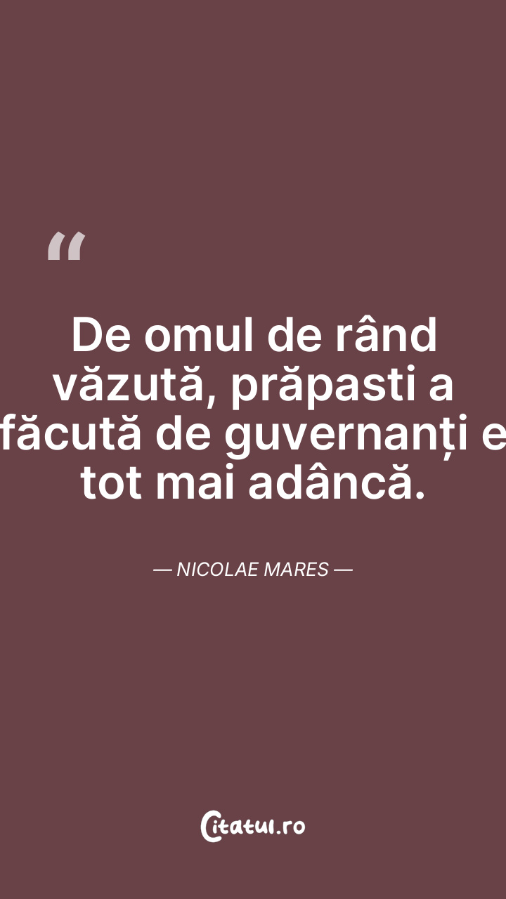 Neputința de a simți este cea mai profundă formă de umilință pentru întreaga umanitate. Nicolae Mares