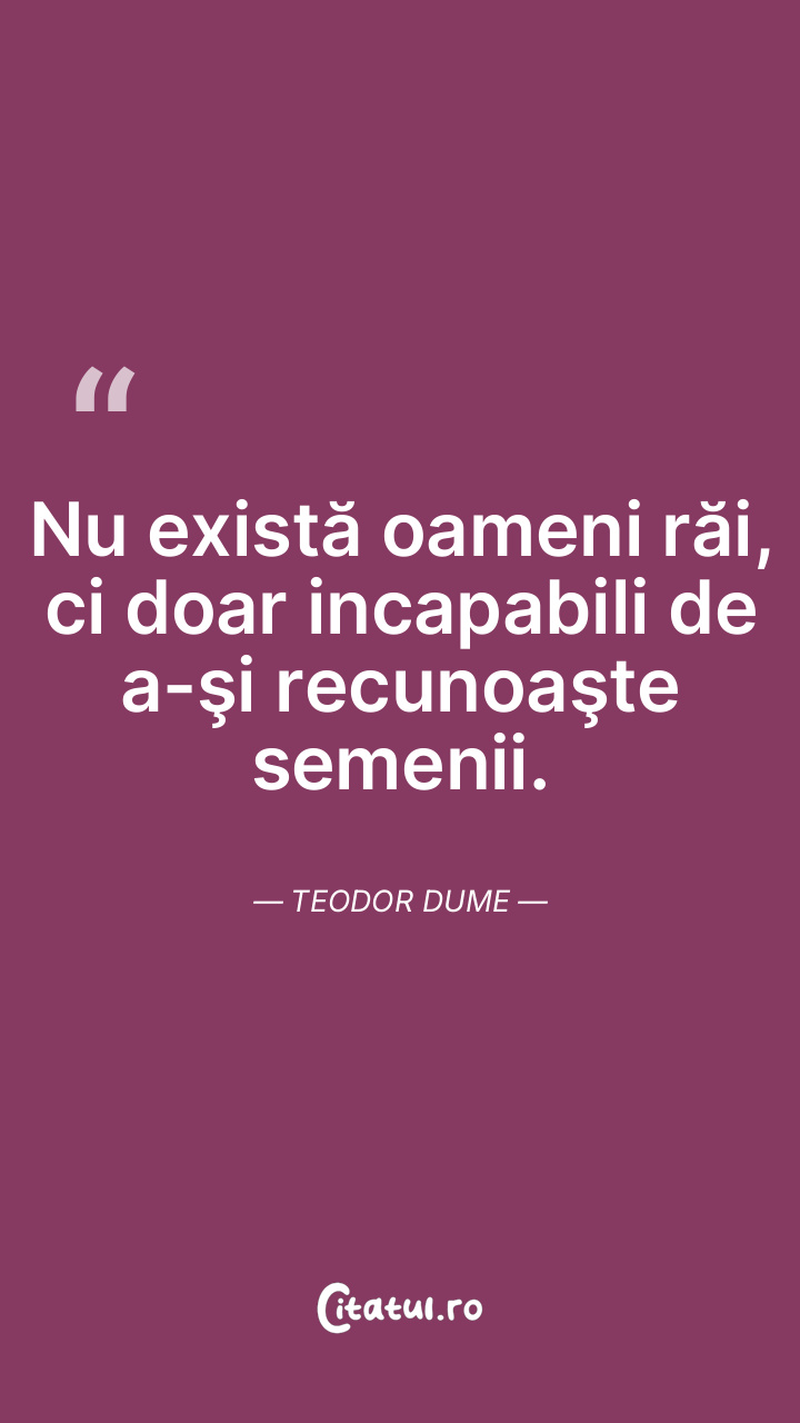 Cei care au inimi rele nu pot exprima bucuria sinceră, ci doar imită zâmbetele. Teodor Dume