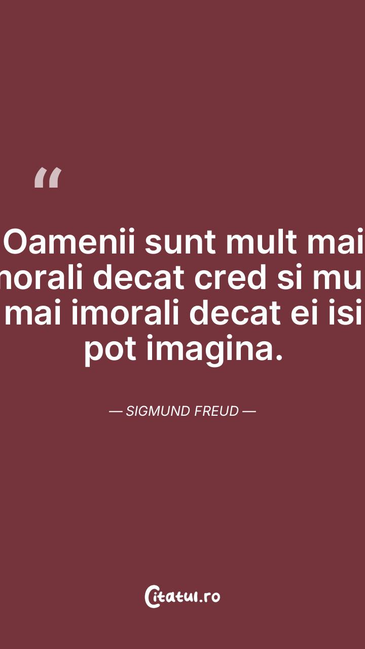 Oamenii sunt mult mai morali decat cred si mult mai imorali decat ei isi pot imagina. Sigmund Freud