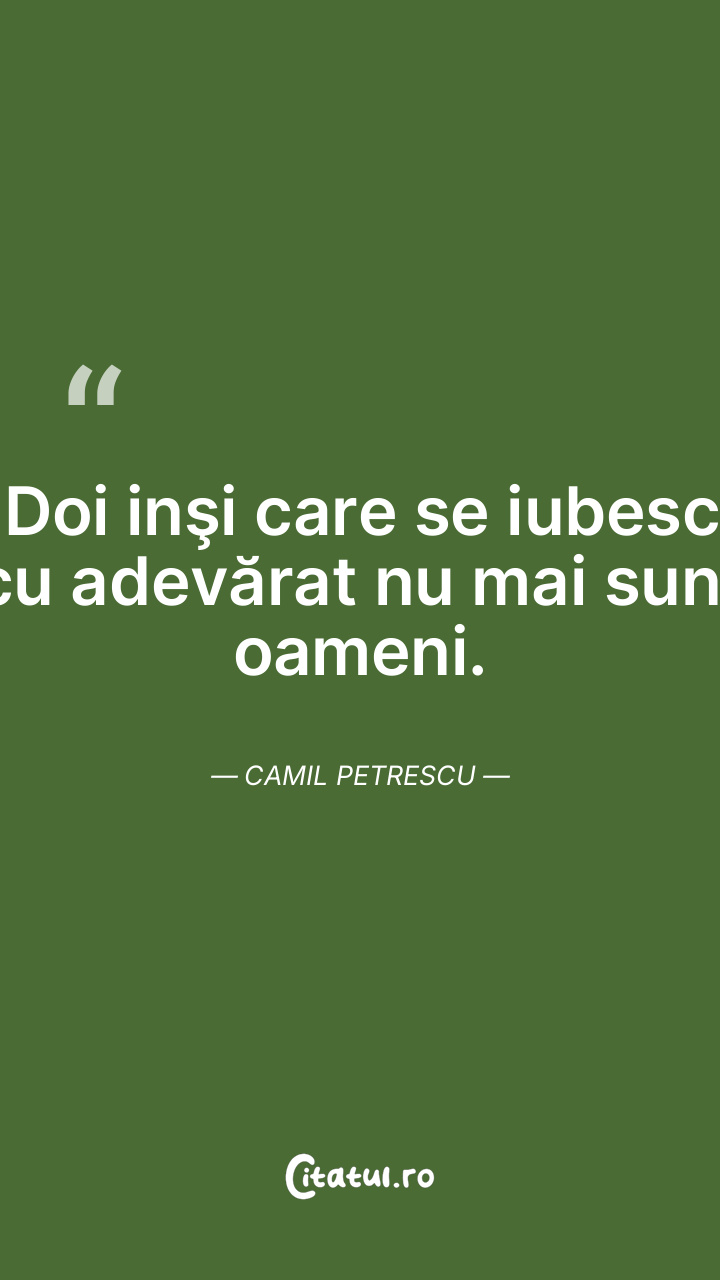 Doi inşi care se iubesc cu adevărat nu mai sunt oameni. Camil Petrescu