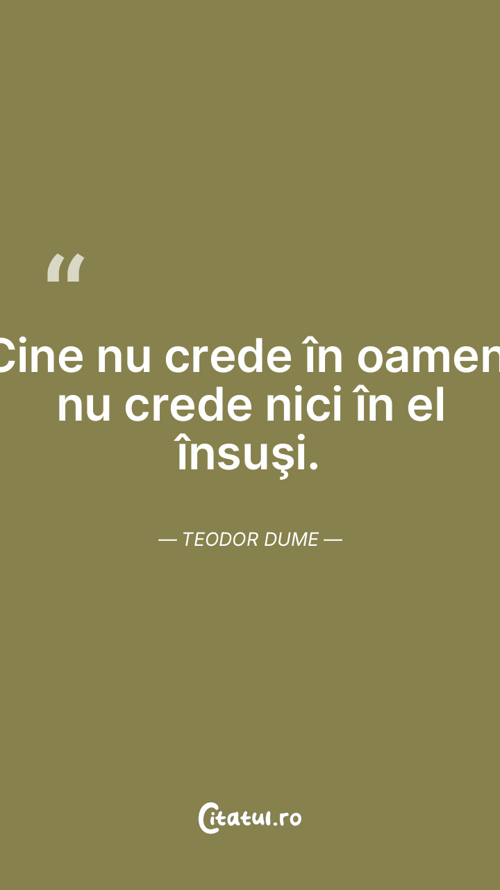 Cine nu crede în oameni nu crede nici în el însuşi. Teodor Dume