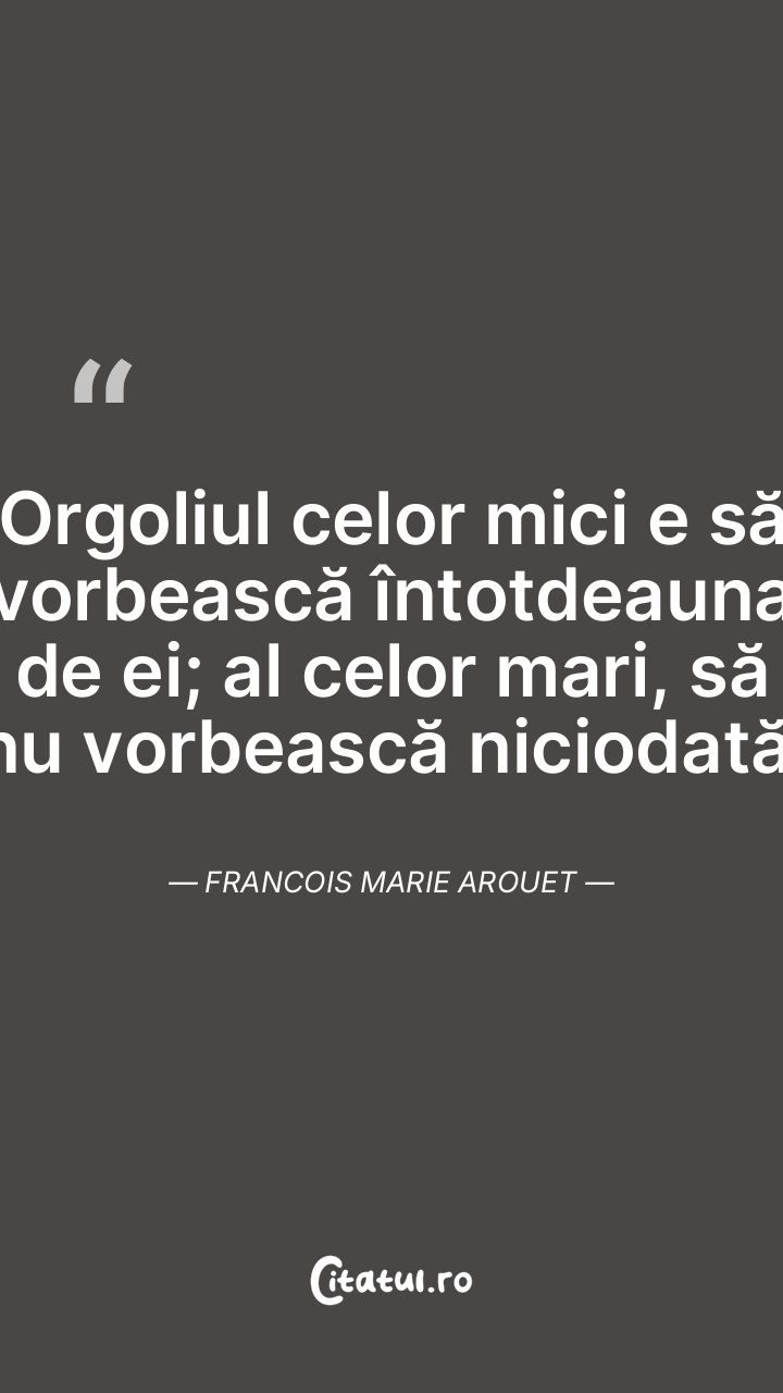 Rareori suntem mândri când suntem singuri. Francois Marie Arouet