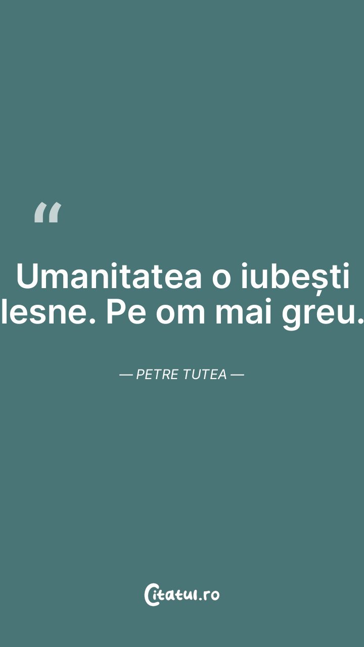 Umanitatea o iubești lesne. Pe om mai greu. Petre ...