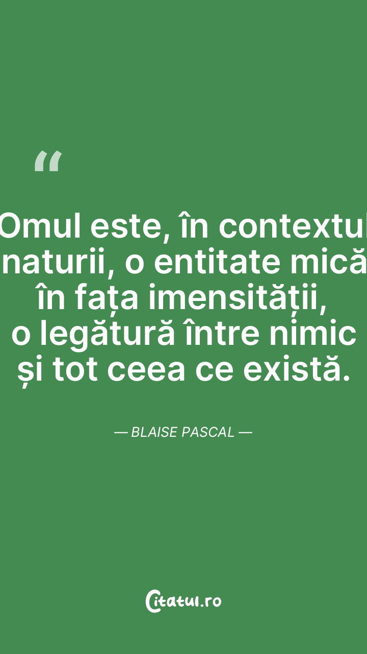 Omul își arată măreția prin conștientizarea slăbiciunilor sale și a căderilor pe care le trăiește. Blaise Pascal