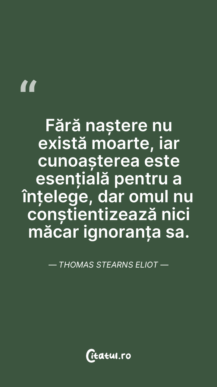 Îmbătrânirea nu este o realitate, ci mai degrabă o stagnare pe care o trăim dintr-un anumit moment al vieții. Thomas Stearns Eliot