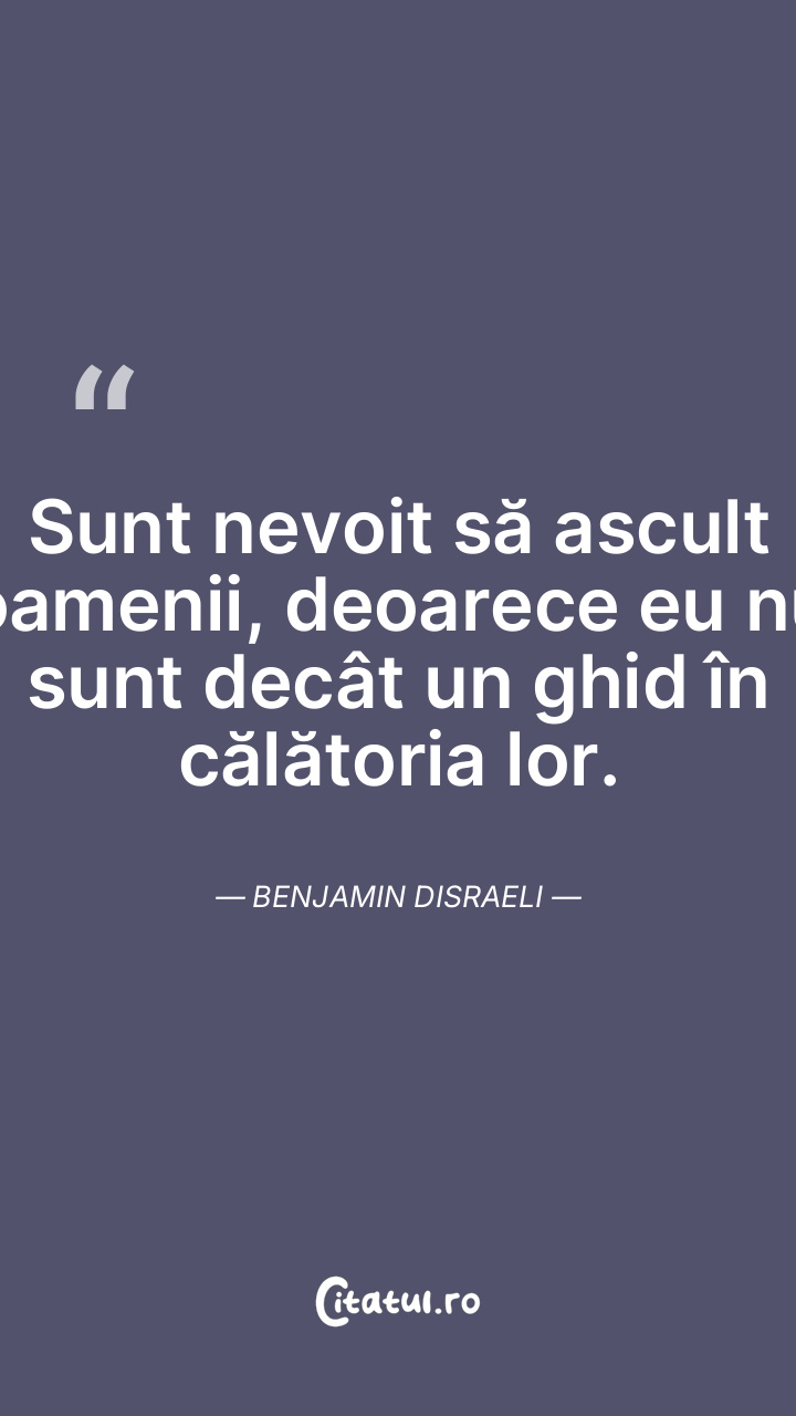 Nu omul este controlat de circumstanţe, acestea sunt controlate de om. Benjamin Disraeli