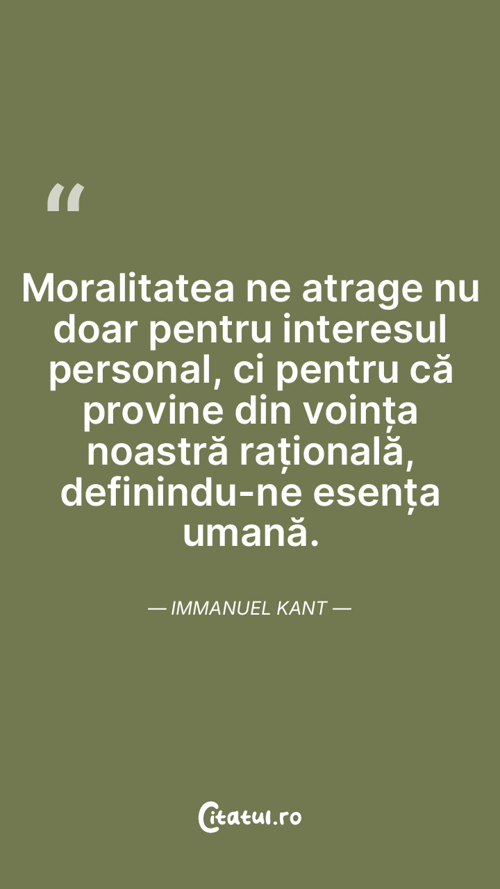 Omul devine o fiinţă morală numai dacă raţiunea sa se înalţă până la noţiunile datoriei şi legii. Immanuel Kant