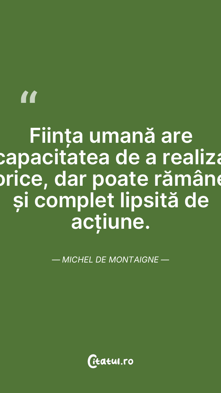 Fiecare individ are aspiraţii şi abilităţi diferite, ceea ce îi face unici în natura lor. Michel de Montaigne