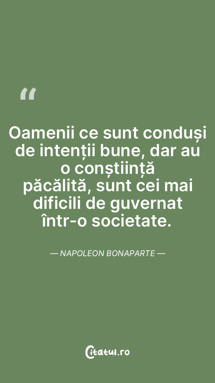 Când persoanele cu viziuni limitate încearcă să realizeze lucruri grandioase, rezultatul este adesea o simplă mediocritate. Napoleon Bonaparte