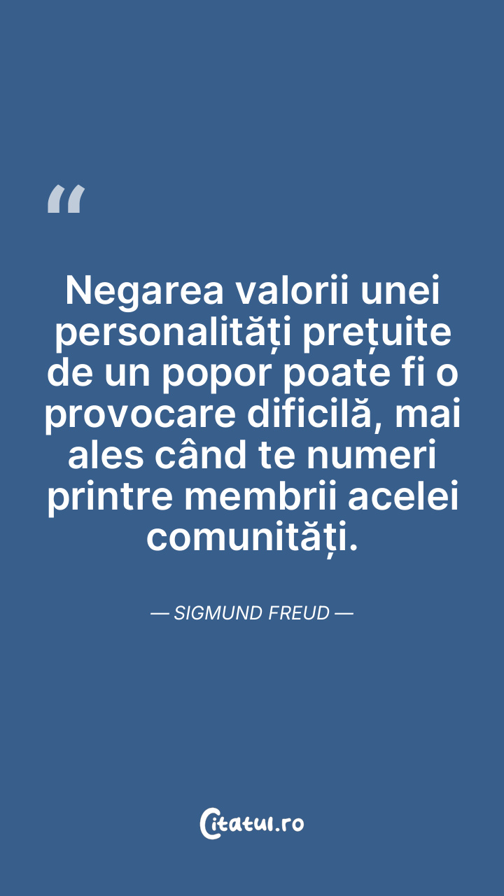 În adâncurile sufletului meu, cred cu tărie că, în mare parte, oamenii nu își au locul pe această lume, cu câteva excepții. Sigmund Freud