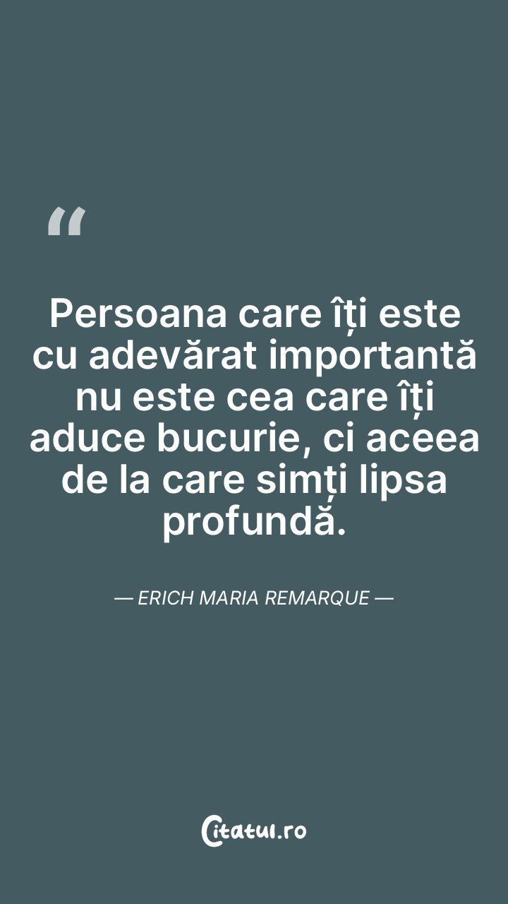 Persoana ta specială nu este doar cineva care se simte confortabil în prezența ta, ci aceea care suferă în absența ta. Erich Maria Remarque