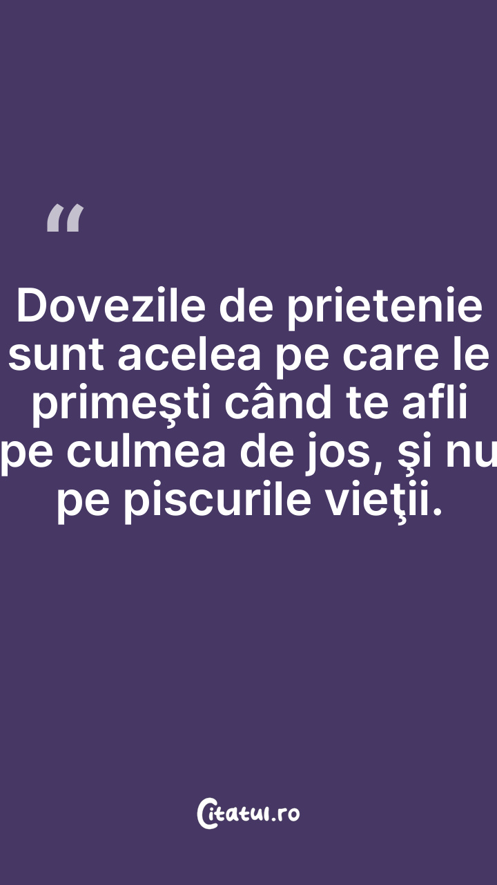 Dovezile de prietenie sunt acelea pe care le primeşti când te afli pe culmea de jos, şi nu pe piscurile vieţii.