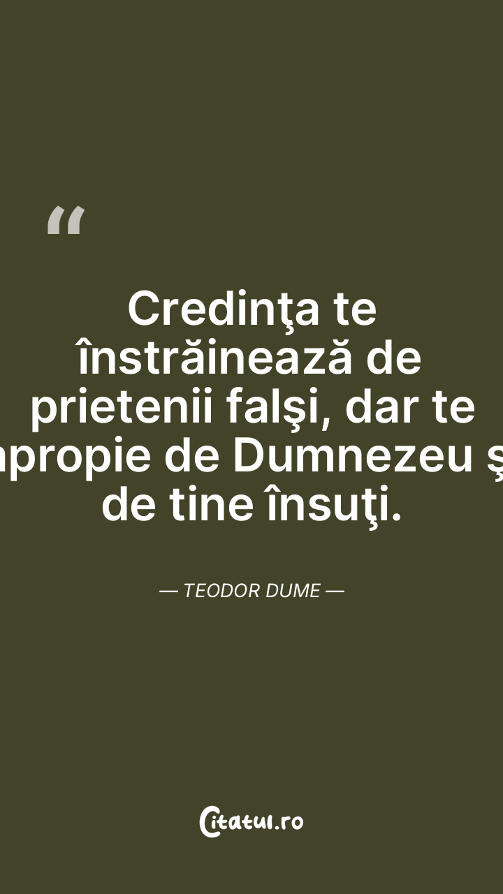 Credinţa te înstrăinează de prietenii falşi, dar te apropie de Dumnezeu şi de tine însuţi. Teodor Dume
