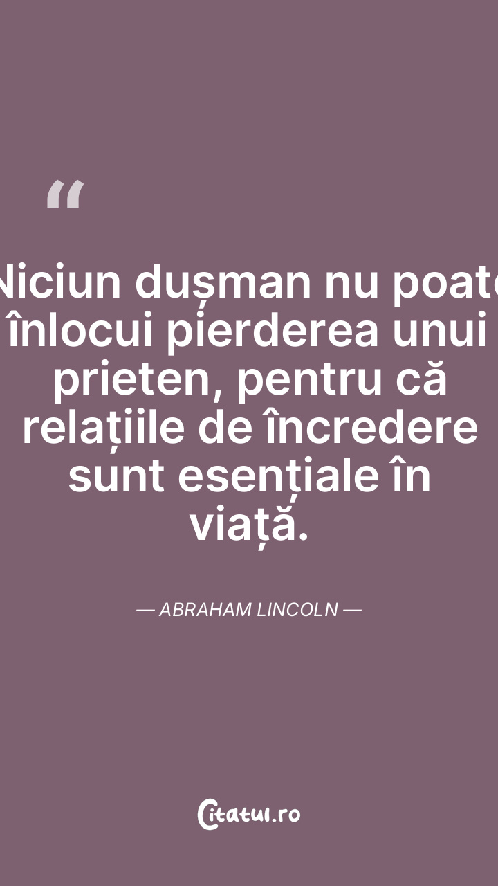 Transformând dușmanii în prieteni, nu cumva îmi întăresc propria putere? Abraham Lincoln