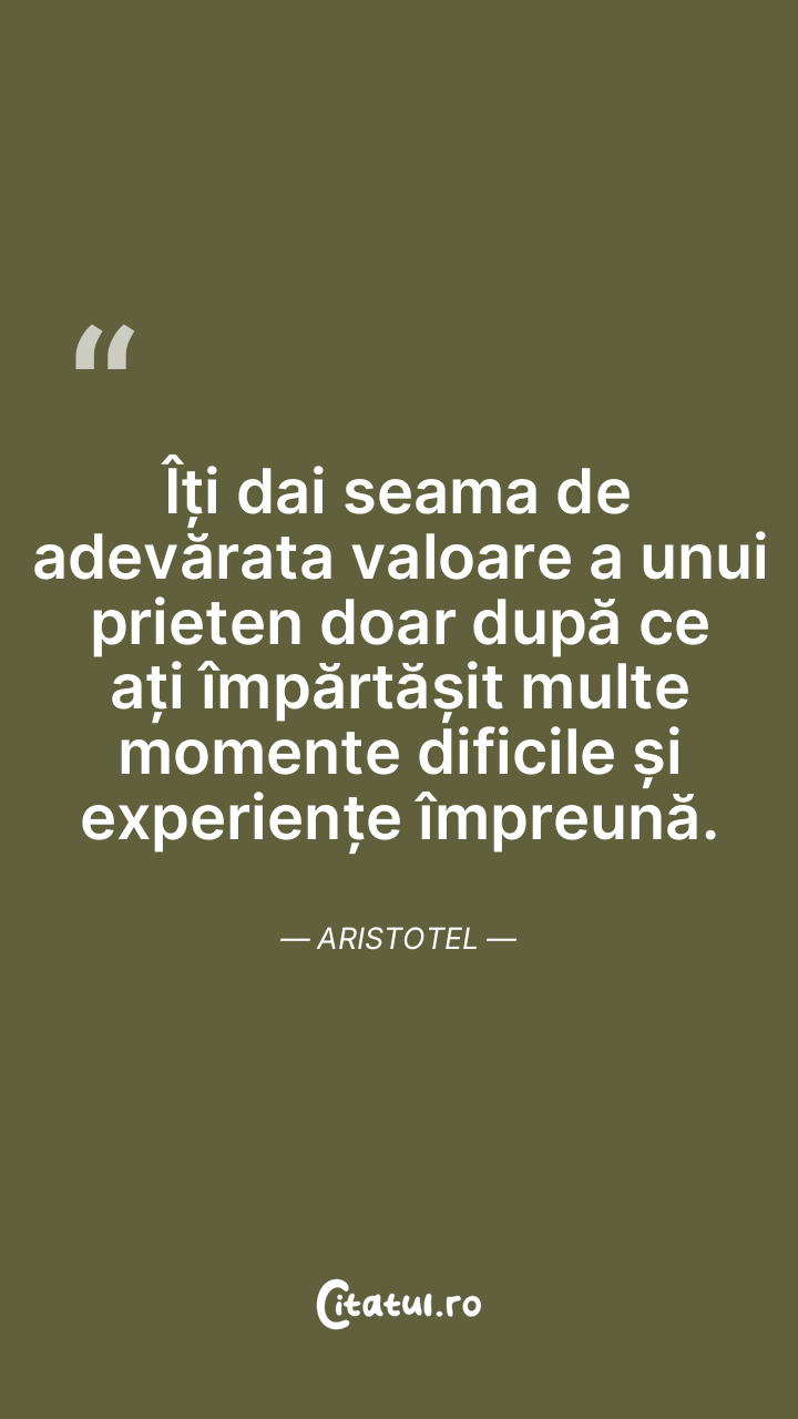 Prietenia constă în dorința de a împărtăși viața a...