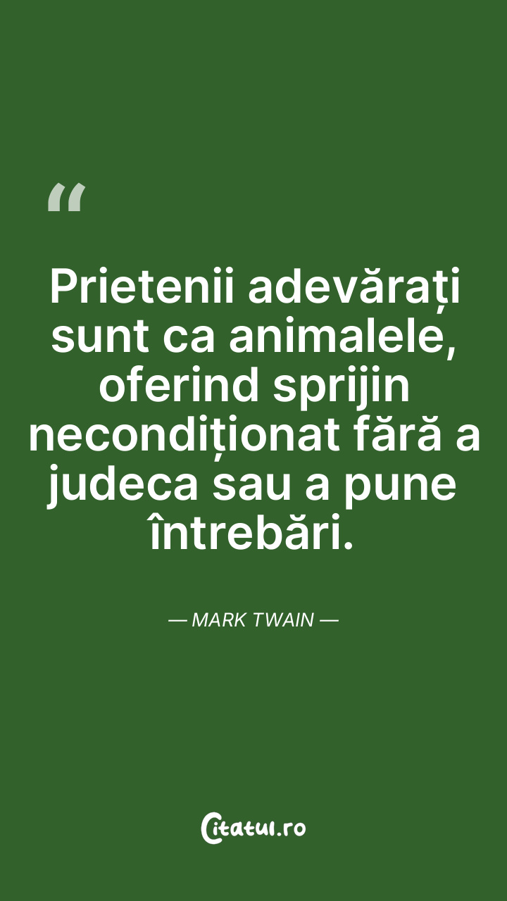 Prietenia este o legătură profundă ce transcende cuvintele, fiind înțeleasă de toți, chiar și fără simțuri. Mark Twain
