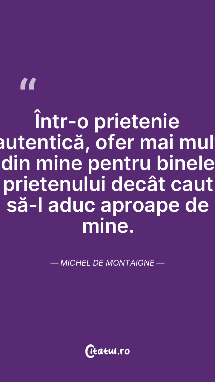 Prietenia se dezvoltă și devine mai profundă prin împărtășirea gândurilor și ideilor între oameni. Michel de Montaigne