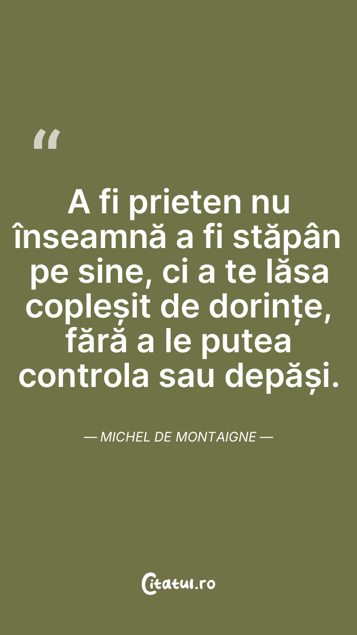 În fiecare zi încerc să depășesc acea atitudine egoistă care ne îndeamnă să ne rănim prietenii, căutând compasiune pentru suferințele noastre. Michel de Montaigne