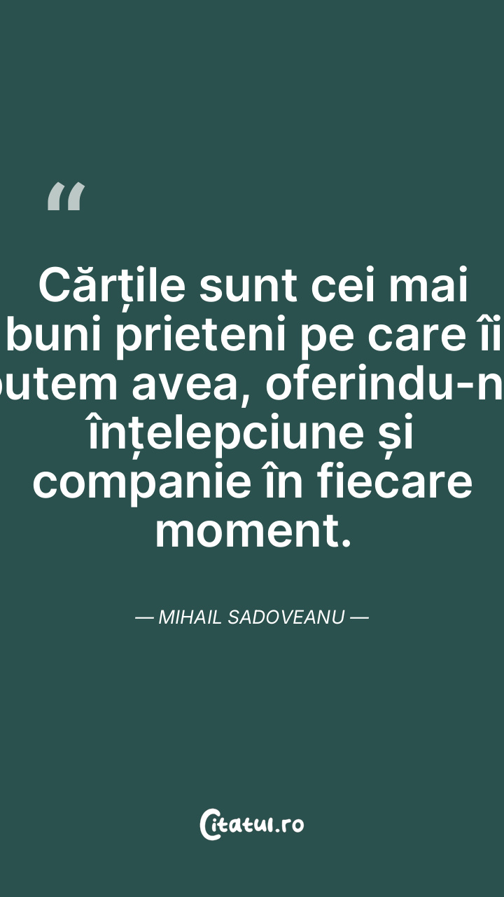 Cărțile sunt prieteni de nădejde, ne oferă sfaturi fără a ne judeca și ne aduc aminte de momentele dragi din viața noastră. Mihail Sadoveanu