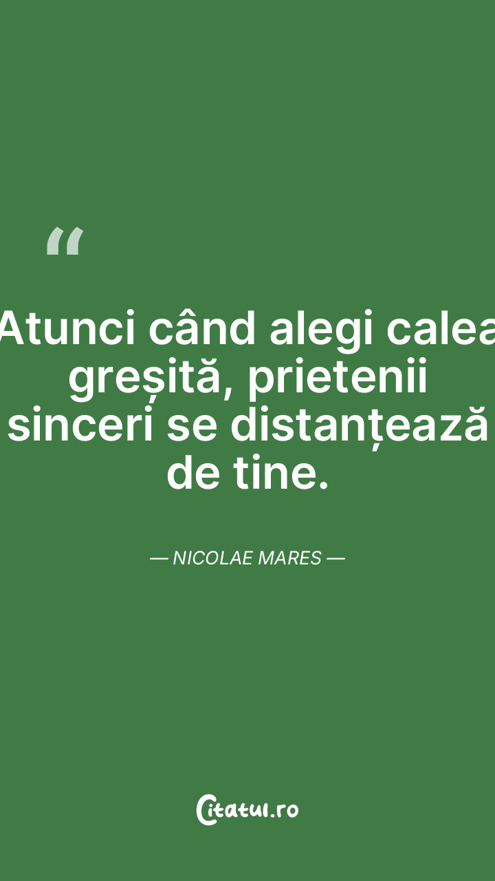 Aleg să primesc critici sincere în locul unor prietenii superficiale sau ipocrite. Nicolae Mares