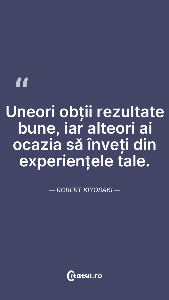 Uneori obții rezultate bune, iar alteori ai ocazia să înveți din experiențele tale. Robert Kiyosaki