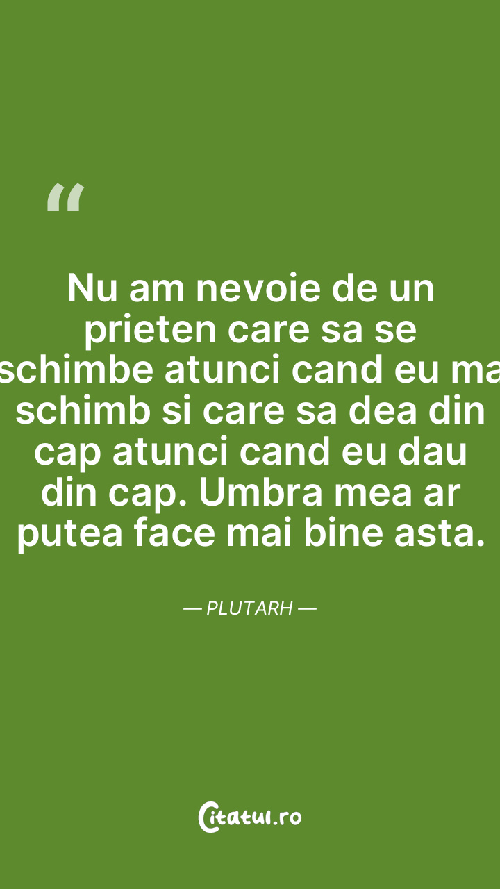 Nu am nevoie de un prieten care sa se schimbe atunci cand eu ma schimb si care sa dea din cap atunci cand eu dau din cap. Umbra mea ar putea face mai bine asta. Plutarh