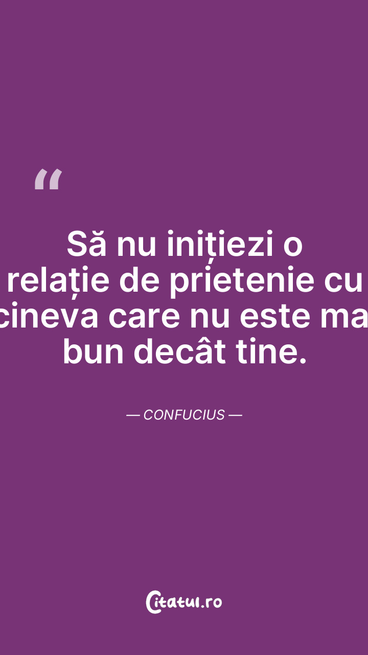 Să nu inițiezi o relație de prietenie cu cineva care nu este mai bun decât tine. Confucius