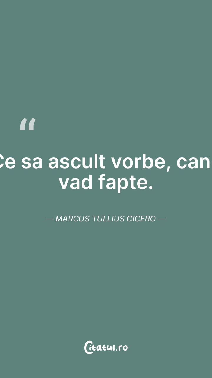 Ce sa ascult vorbe, cand vad fapte. Marcus Tullius...