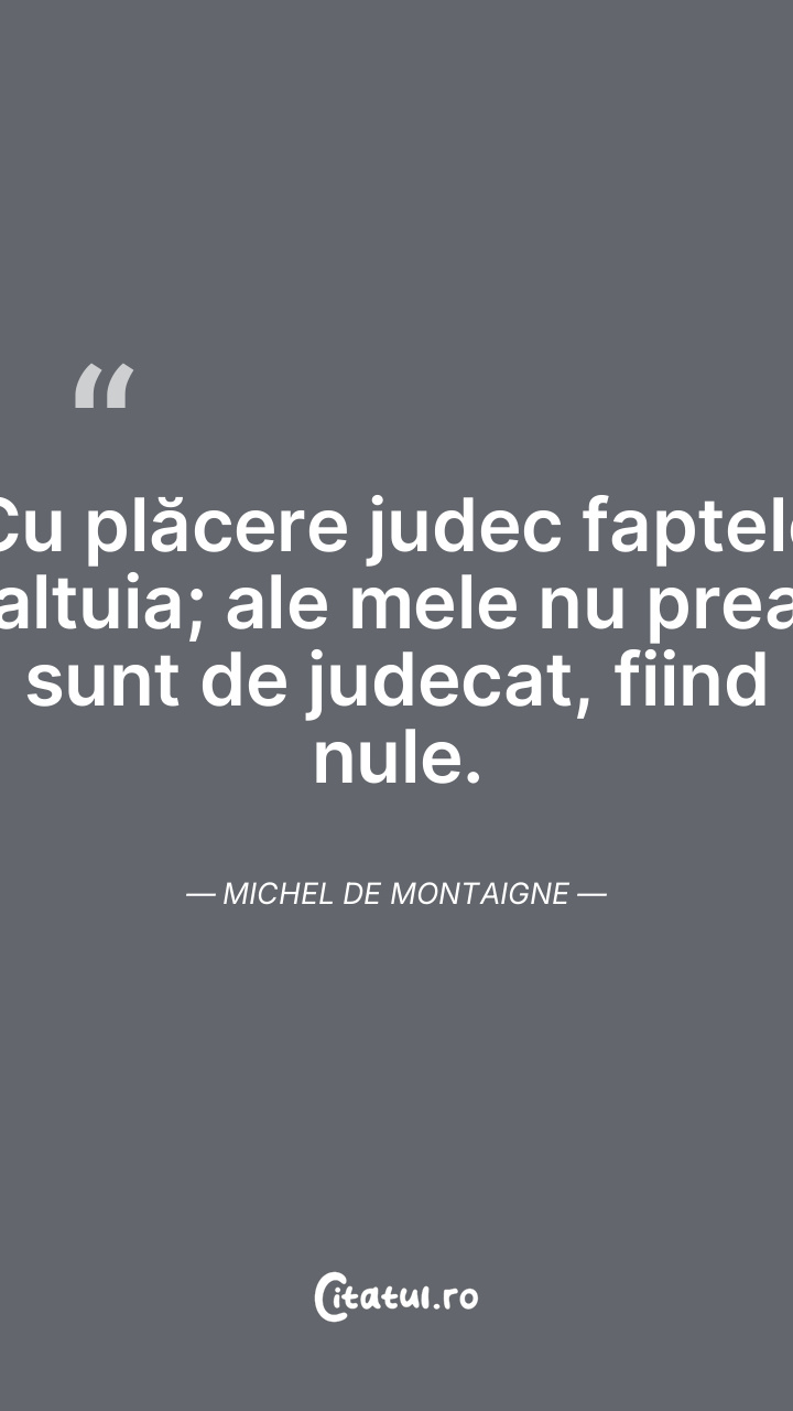 Cu plăcere judec faptele altuia; ale mele nu prea sunt de judecat, fiind nule. Michel de Montaigne