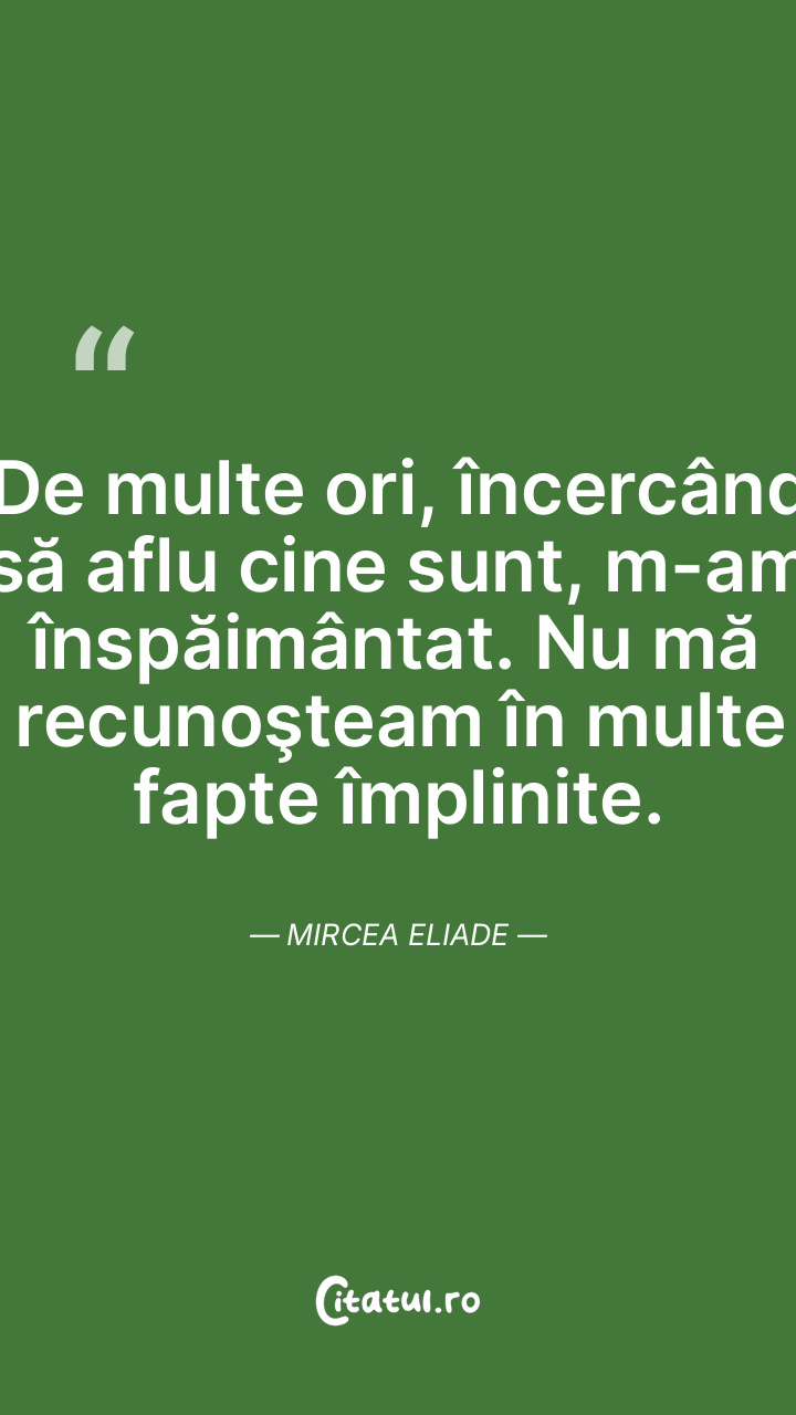 De multe ori, încercând să aflu cine sunt, m-am înspăimântat. Nu mă recunoşteam în multe fapte împlinite. Mircea Eliade