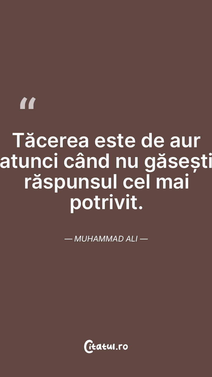 Tăcerea este de aur atunci când nu găsești răspunsul cel mai potrivit. Muhammad Ali