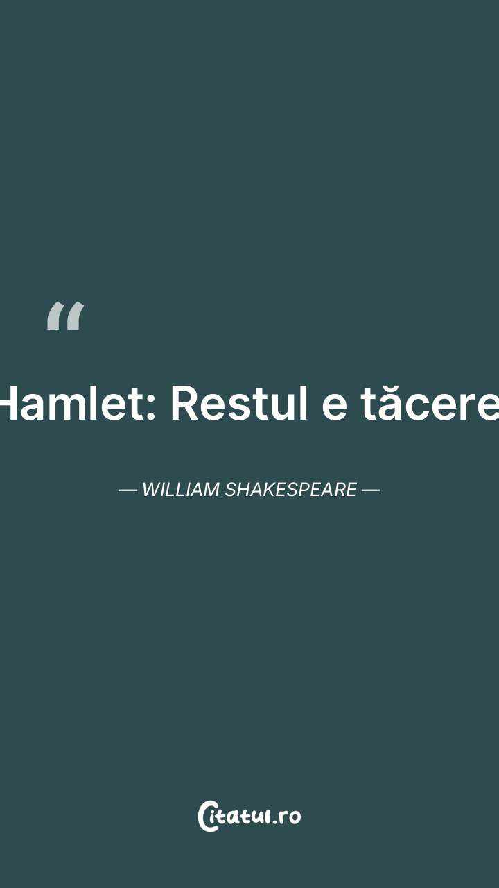 Hamlet: Restul e tăcere. William Shakespeare ...