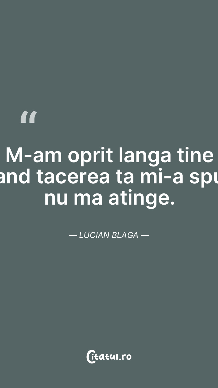 M-am oprit langa tine cand tacerea ta mi-a spus nu ma atinge. Lucian Blaga