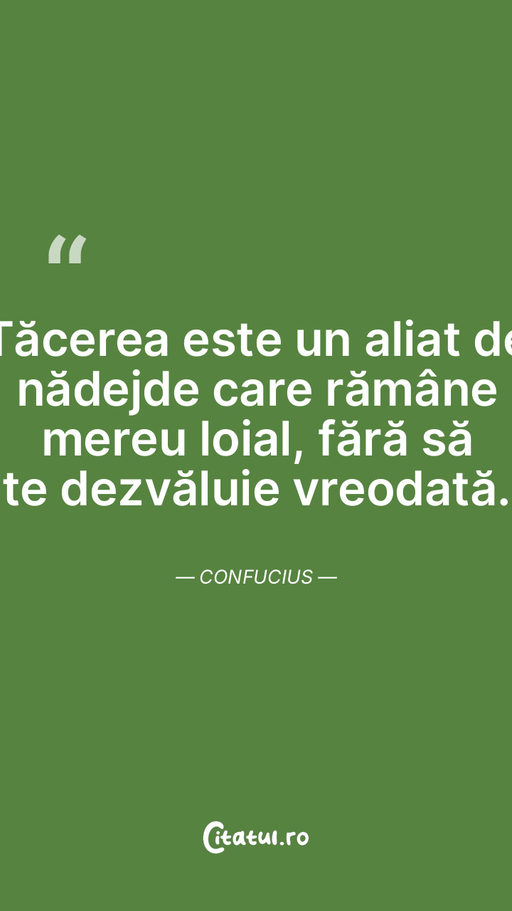Tăcerea este un aliat de nădejde care rămâne mereu loial, fără să te dezvăluie vreodată. Confucius