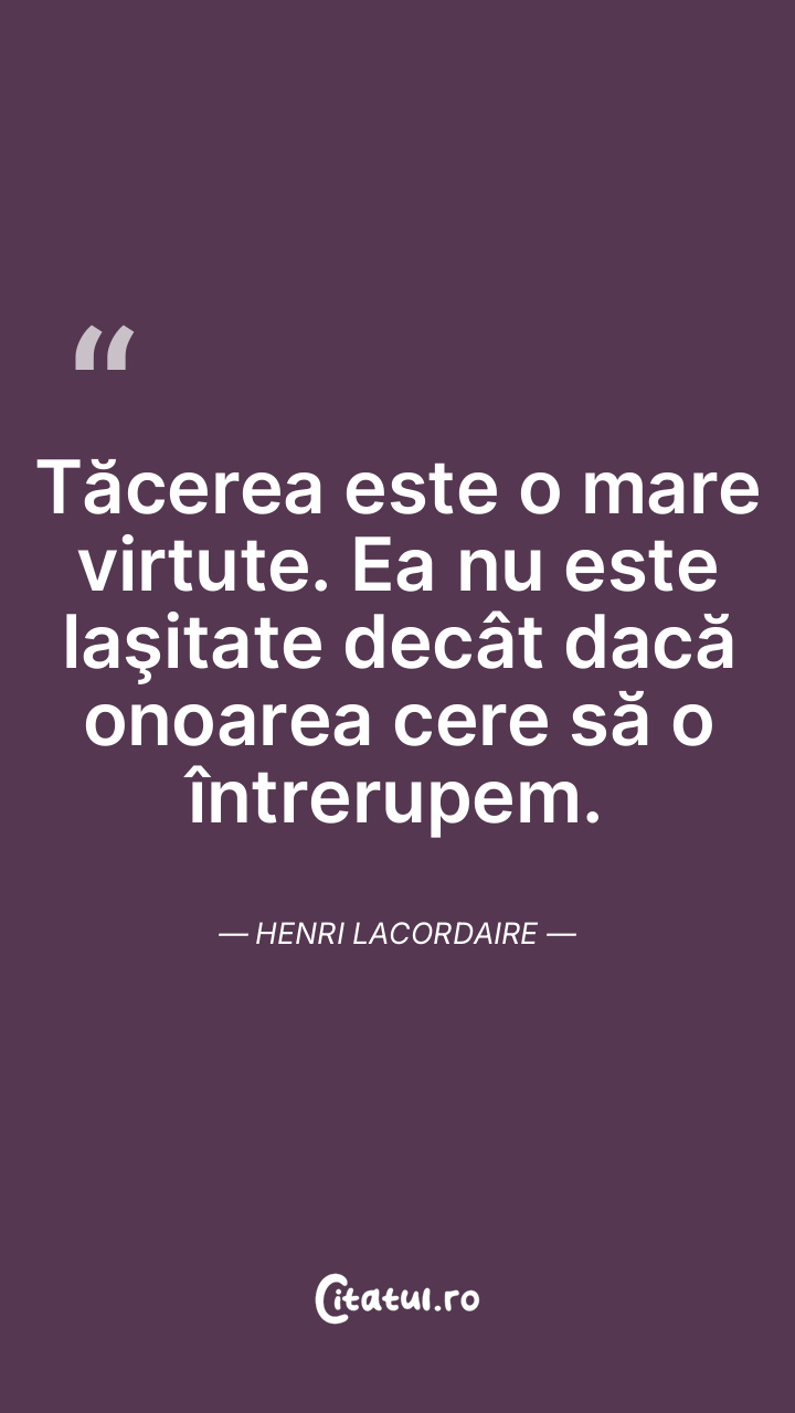 Tăcerea este o mare virtute. Ea nu este laşitate decât dacă onoarea cere să o întrerupem. Henri Lacordaire