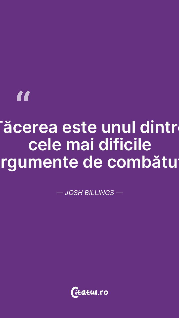 Tăcerea este unul dintre cele mai dificile argumente de combătut. Josh Billings