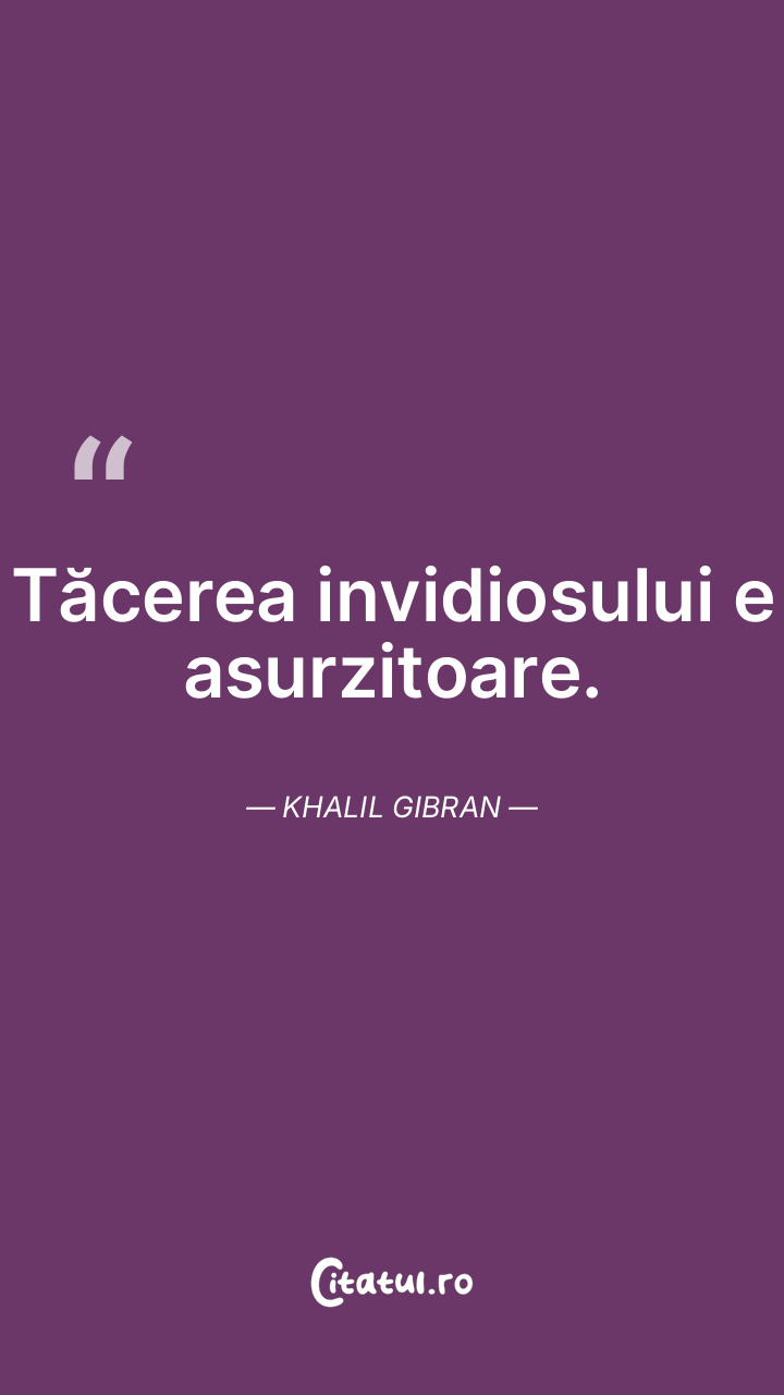 Tăcerea invidiosului e asurzitoare. Khalil Gibran ...
