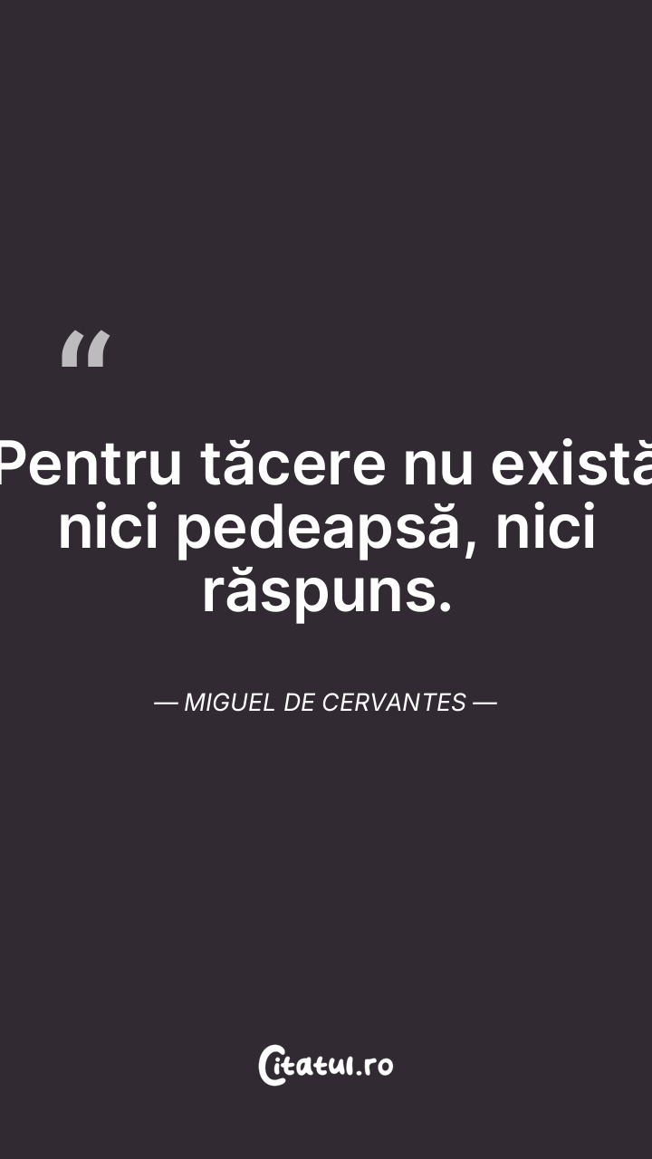 Pentru tăcere nu există nici pedeapsă, nici răspuns. Miguel de Cervantes