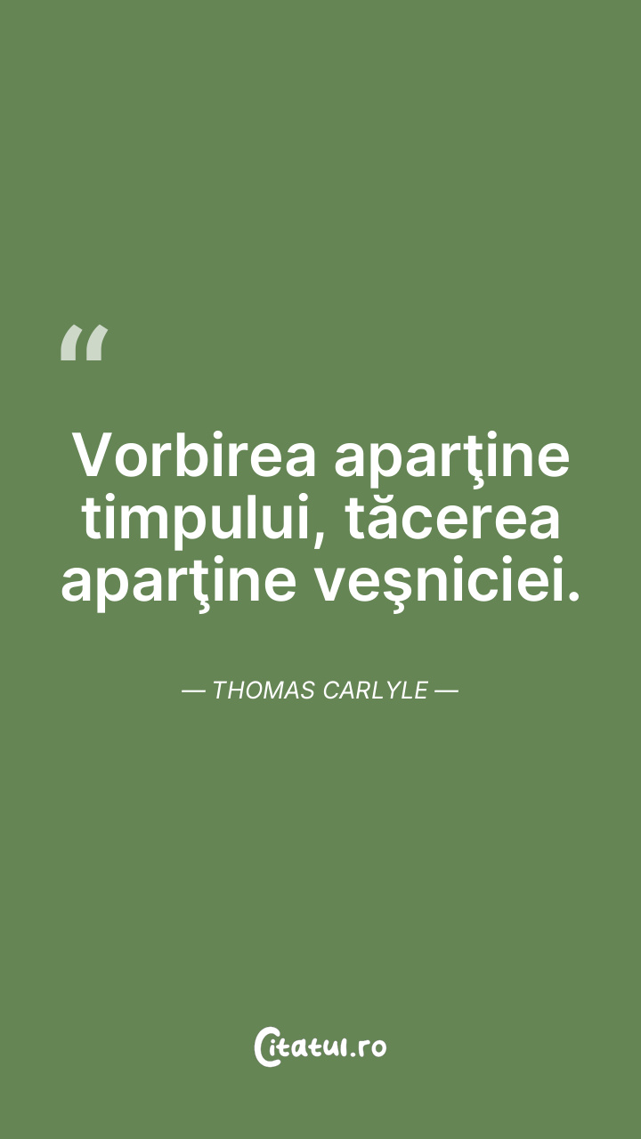 Vorbirea aparţine timpului, tăcerea aparţine veşniciei. Thomas Carlyle