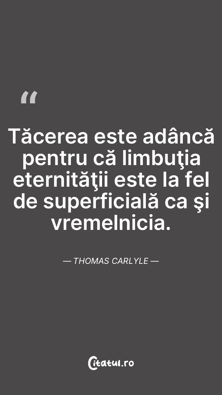 Tăcerea este adâncă pentru că limbuţia eternităţii este la fel de superficială ca şi vremelnicia. Thomas Carlyle