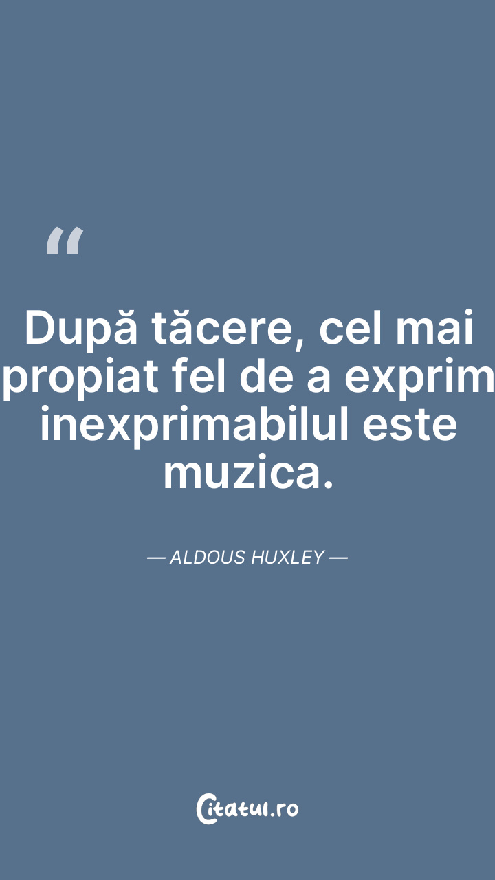După tăcere, cel mai apropiat fel de a exprima inexprimabilul este muzica. Aldous Huxley