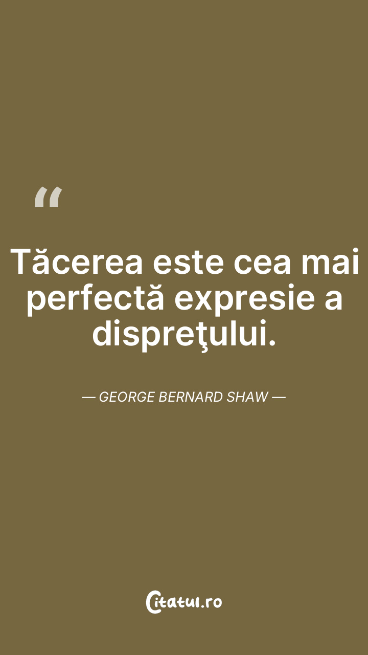 Tăcerea este cea mai perfectă expresie a dispreţului. George Bernard Shaw