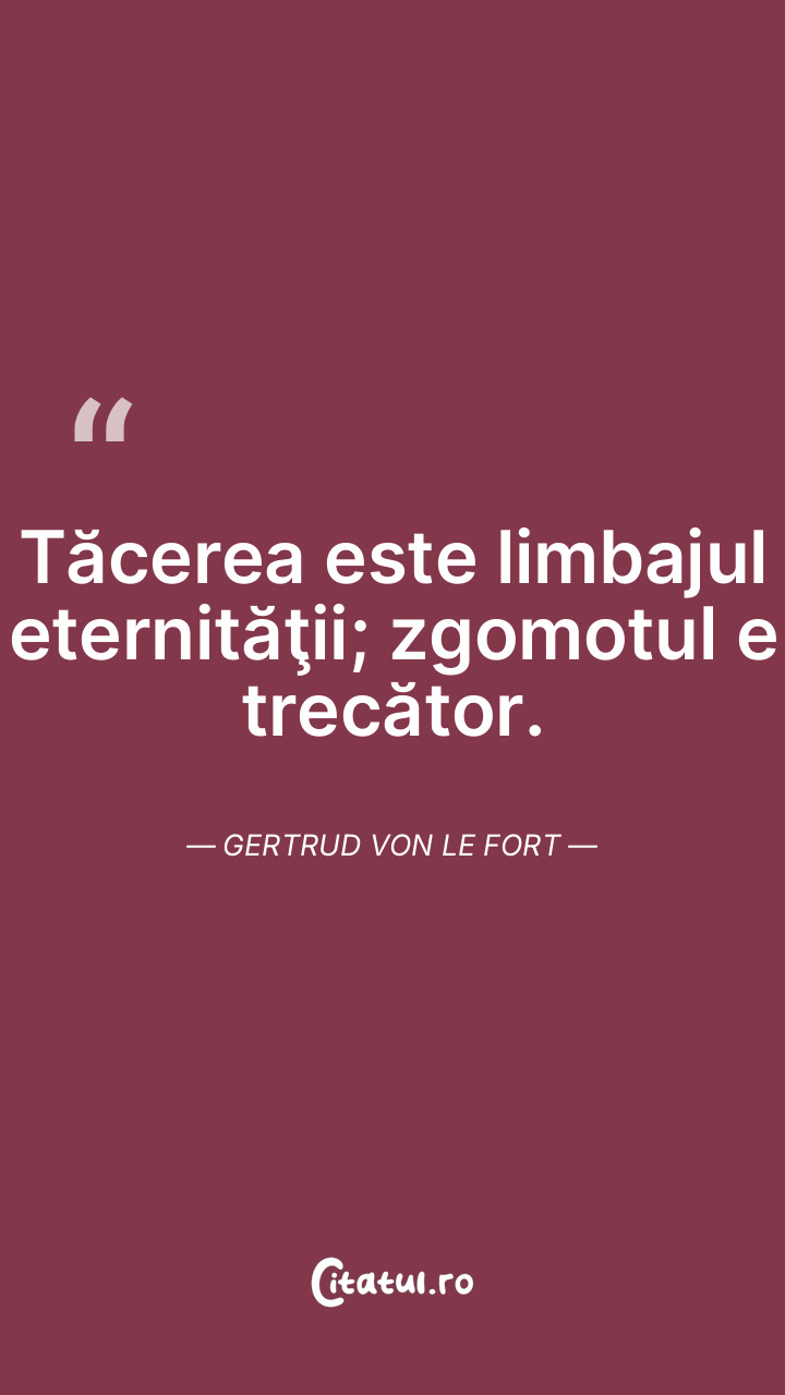 Tăcerea este limbajul eternităţii; zgomotul e trecător. Gertrud von Le Fort