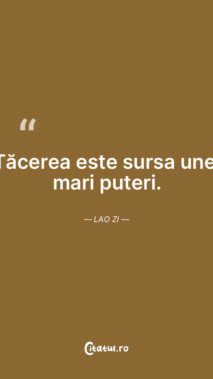Tăcerea este sursa unei mari puteri. Lao Zi