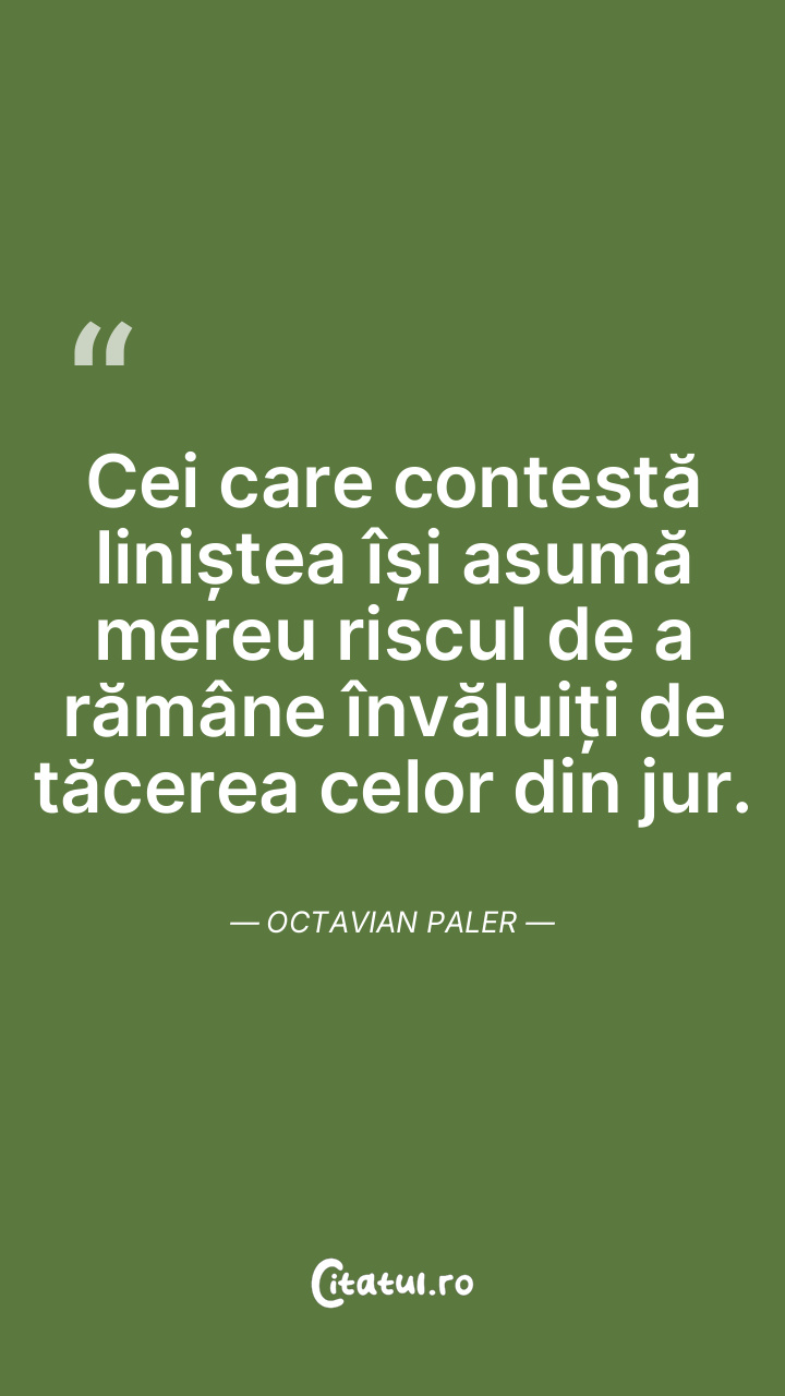 Cei care contestă liniștea își asumă mereu riscul de a rămâne învăluiți de tăcerea celor din jur. Octavian Paler