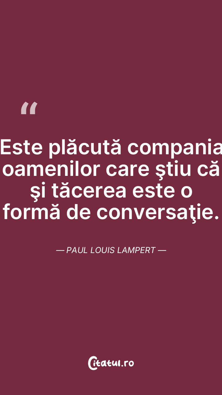 Este plăcută compania oamenilor care ştiu că şi tăcerea este o formă de conversaţie. Paul Louis Lampert