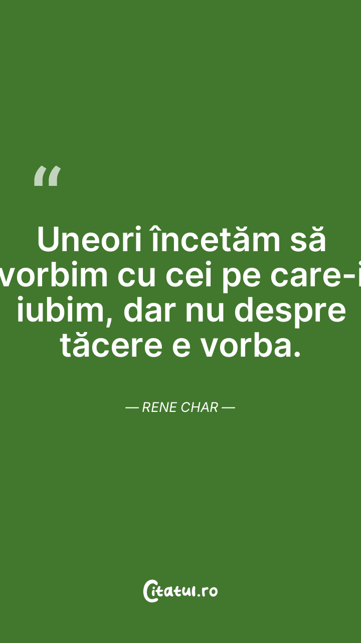Uneori încetăm să vorbim cu cei pe care-i iubim, dar nu despre tăcere e vorba. Rene Char