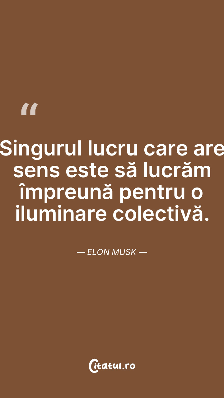 Singurul lucru care are sens este să lucrăm împreună pentru o iluminare colectivă. Elon Musk