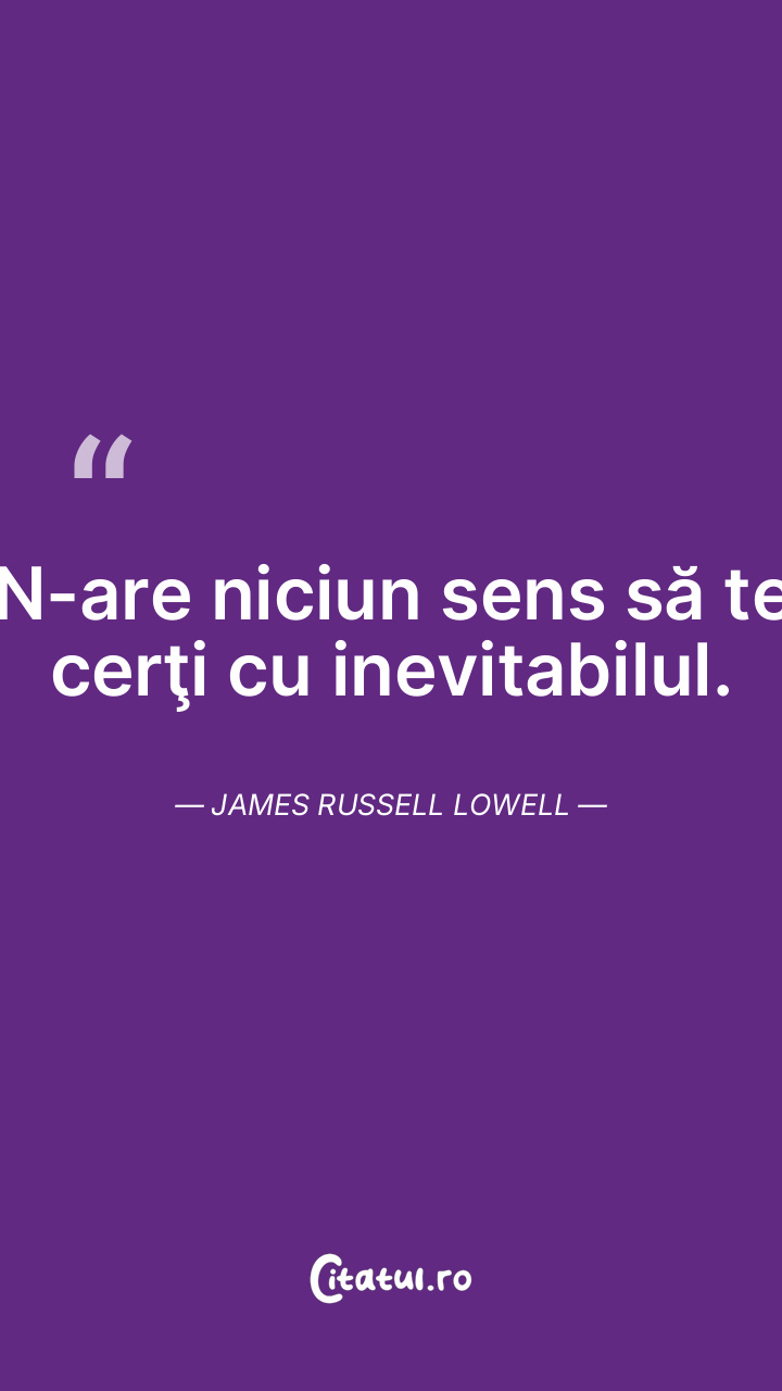 N-are niciun sens să te cerţi cu inevitabilul. James Russell Lowell