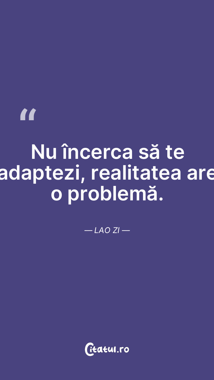 Nu încerca să te adaptezi, realitatea are o problemă. Lao Zi